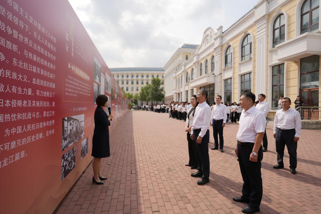 为深入学习贯彻党的二十大精神,全面落实习近平新时代中国特色社会主义思想,隆重纪念中国人民抗日战争胜利和世界反法西斯战争胜利80周年,9月12日,学院与东北烈士纪念馆联合主办“抗战14年的黑龙江 纪念中国人民抗日战争胜利暨世界反法西斯战争胜利80周年展”。学院党委书记雒文虎,院长宋飞,院领导刘东兴、宛景森、马晓春、付尧、崔志林及东北烈士纪念馆馆长佟国波出席。学院师生代表200余人参观展览,共同回顾龙江人民救亡图存、抗击侵略的雄壮史诗。