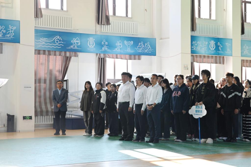 为深入学习宣传贯彻党的二十届三中全会精神,进一步加强对青年学生的爱国主义教育,增强学生的国家意识、民族意识、历史意识,厚植爱党爱国之情、激发强国复兴之志,9月18日,由学院团委主办,声乐歌剧系团委承办的“铭记伟大胜利,擎旗开创未来”纪念“九一八”事变94周年主题升旗仪式在体育馆举行。学院副院长、党委委员宛景森,党委委员、宣传统战部(党委教师工作部)部长丁健出席仪式。学院全体团干部、2025级本科生参加仪式。
