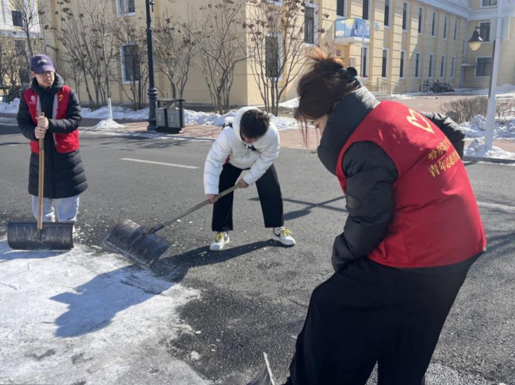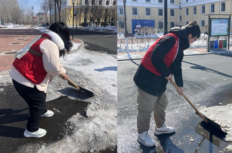 本次雷锋日志愿者清扫冰雪活动不仅保障了校园内师生的出行安全,同时也提高了同学们对于爱校园、护环境的文明意识,进一步推动了文明校园的建设。青年学生志愿者们用实际行动,呼吁大家为营造和谐、美丽、舒适的校园环境贡献出微薄之力,以向上向善的青春风貌,做哈音好青年。