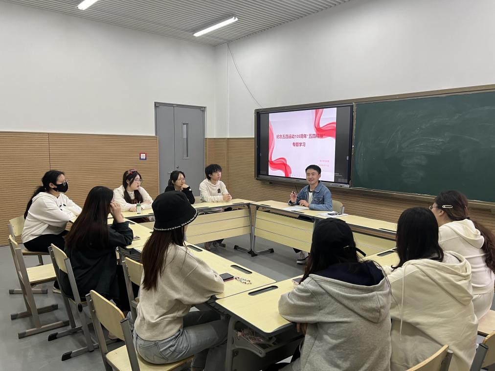 为学习贯彻习近平总书记关于青年工作的重要思想,团结和带领青年学生成长为有理想、敢担当、能吃苦、肯奋斗的新时代好青年,5月13日下午,音乐学系团委在主楼A305室开展纪念五四运动105周年“五四精神”主题团课。本次团课由音乐学系团委书记白宇辉主讲,音乐学系部分团员青年参加。