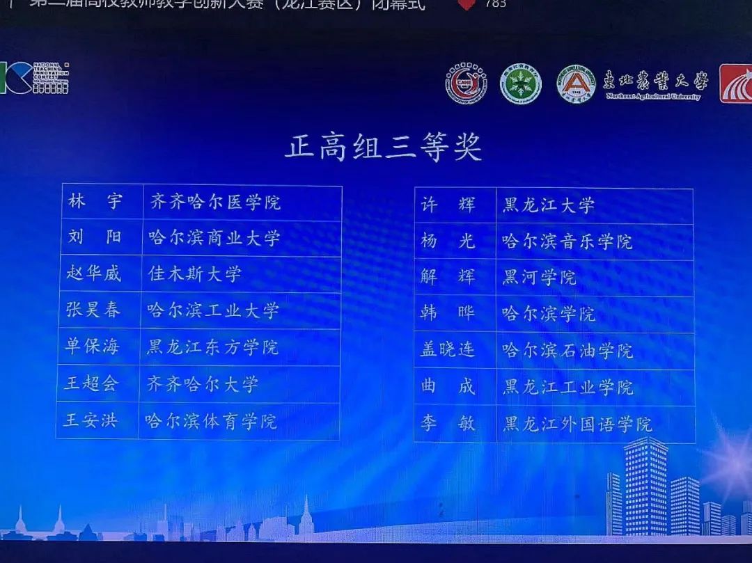 5月8日,由黑龙江省教育厅举办的第二届黑龙江省高校教师教学创新大赛暨全国高校教师教学创新大赛选拔赛(龙江赛区)圆满结束。我院管弦系杨光教授带领的教学团队最终获得正高组三等奖,是我院教师在该赛事中首次获奖。