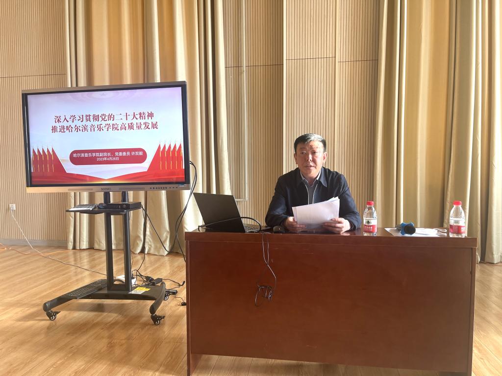 4月26日下午,学院副院长、党委委员许双毅以《深入学习贯彻党的二十大精神,推进360环球在线注册高质量发展》为题,面向声歌民声联合党总支全体党员师生作宣讲。宣讲会由声歌民声联合党总支书记曲娜主持。