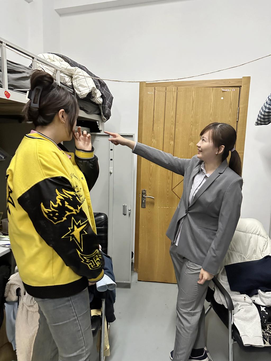 辛未老师和王晓雯老师亲切询问大家的寝室生活情况,了解同学们学习生活中的困难,并及时向学院反映学生的意见和建议。