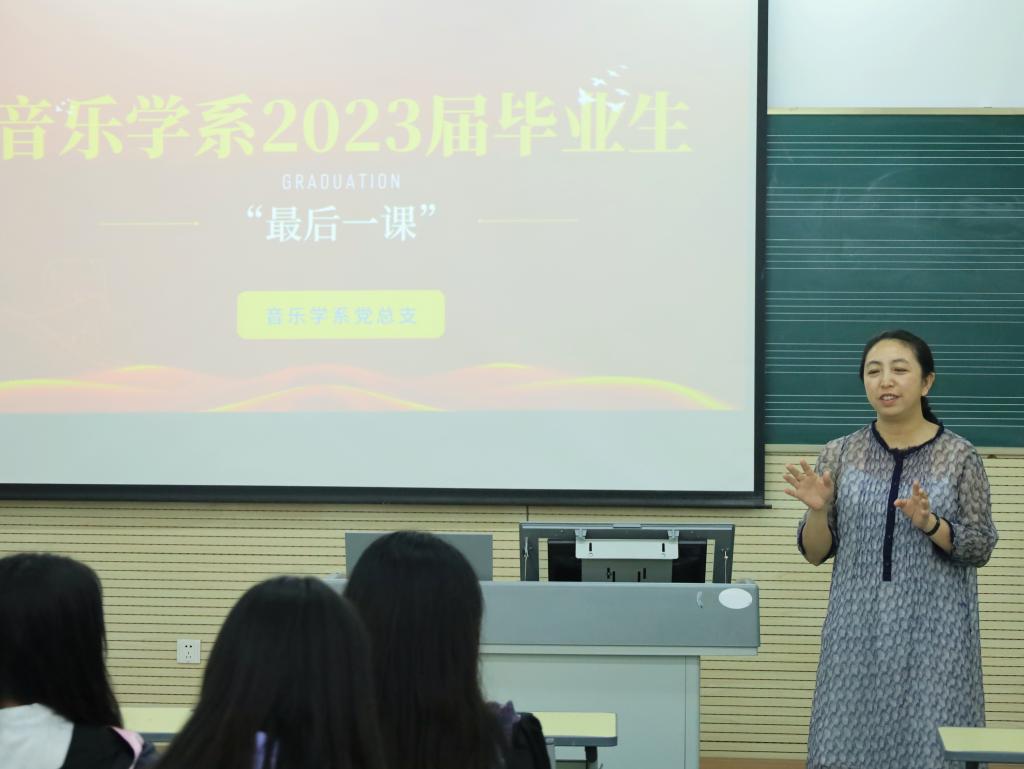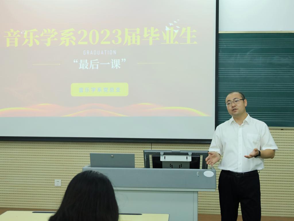 人间六月天,最是多情毕业季。6月26日下午,音乐学系党总支在主楼A115教室为音乐学系2023届毕业生上了“最后一课”。音乐学系主任王岩出席活动,全体音乐学系2023届毕业生参加活动。活动由音乐学系党总支书记王晓亮主持。